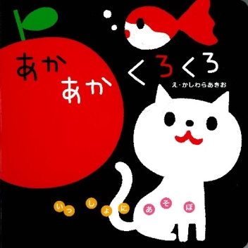 0歳の赤ちゃんがよく見える「黒・白・赤」を中心にした人気シリーズの新刊!前作「しましまぐるぐる」が大人気の柏原晃夫さんの絵で。赤い丸、赤いりんご、黒いながぐつ、白いねこ、さらに穴あきしかけに、今回も赤ちゃんがくぎづけに!2冊同時発売。